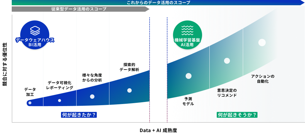 BI領域のユースケース創出に留まらず、AI等を利活用した高度な分析の仕組み化は今後のデータ基盤構築のプロジェクトでは必要不可欠です。