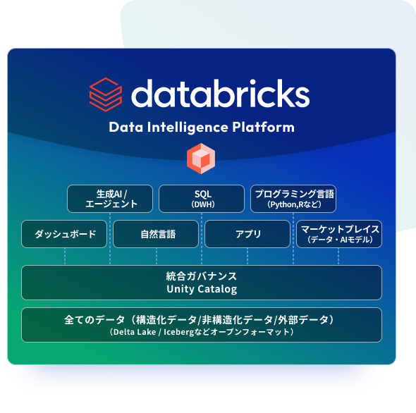 Databrickは、データウェアハウスとデータレイクの利点を融合した「データレイクハウス」アーキテクチャを採用しています。構造化・非構造化データを同一基盤で一元管理できるため、用途ごとにデータをコピーしたり、個別システムで分断されることなく、常に最新かつ統合されたデータにアクセス可能です。これにより、データの整合性を保ちながら、分析やAI活用をスムーズに進めることができます。